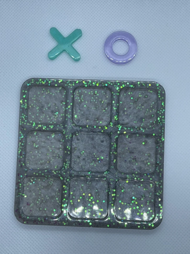 Our resin tic tac toe board is completely customizable, offering you the freedom to choose the colors that best fit your taste and decor. Select up to two colors to create a one-of-a-kind design that reflects your personality. Made from high-quality resin, the finish is both durable and visually striking, ensuring your board maintains its beauty for years to come. With this level of personalization, the tic tac toe board makes a thoughtful gift for loved ones or a treat for yourself. You can even choose to add glitter if you’d like.